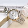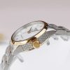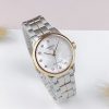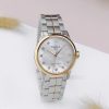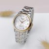 Vỏ thép không gỉ tông màu bạc với vòng đeo tay bằng thép không gỉ hai tông màu (tông màu bạc và vàng hồng PVD). Viền thép không gỉ PVD vàng hồng cố định. Mặt số xà cừ trắng với các kim màu vàng hồng và vạch chỉ giờ đính kim cương. Điểm đánh dấu phút xung quanh vành ngoài. Loại quay số: Analog. Chuyển động tự động với khả năng dự trữ năng lượng trong 80 giờ. Tinh thể sapphire chống trầy xước. Kéo/đẩy vương miện. Ốp lưng trong suốt nhìn xuyên thấu. Hình dạng vỏ tròn, kích thước vỏ: 33 mm, độ dày vỏ: 9,8 mm. Chiều rộng dải: 18 mm. Kẹp bướm. Chống nước ở độ sâu 50 mét / 165 feet. Chức năng: giờ, phút, giây. Thông tin bổ sung: mặt số được đính 12 viên kim cương wesselton hàng đầu 0,0852 ct, vs-si. Dòng sang trọng. Phong cách đồng hồ đeo tay. Nhãn đồng hồ: Swiss Made. Đồng hồ nữ Tissot Luxury Automatic Diamond White Xà cừ T086.207.22.116.00.