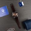 Maserati Potenza Brown Dial Mens R8851108011 có đường kính 42 mm và độ dày 11 mm. Mặt kính được làm bằng chất liệu kính khoáng. Khung vỏ được làm bằng chất liệu thép không gỉ 316L. Bên trong khung vỏ là bộ máy quartz có độ chính xác cao.