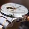 Thiết kế sang trọng, lich lãm với dial trắng kết hợp kim, cọc mạ vàng hồng,