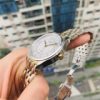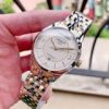 Mặt số: Mặt tròn màu bạc, có thứ, lịch ngày. Kim và số mạ vàng yellow gold PVD.