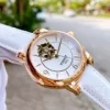Điểm nhấn trong thiết kế của mẫu đồng hồ này là ô hở tim góc 12h được làm họa tiết bông hoa rất đẹp và độc đáo