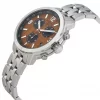 Vỏ thép không gỉ tông màu bạc với vòng đeo tay bằng thép không gỉ tông màu bạc. Cố định khung thép không gỉ tông màu bạc. Mặt số màu nâu với các kim có tông màu bạc và vạch chỉ giờ bằng chữ số Ả Rập. máy đo tốc độ. Loại quay số: Analog.